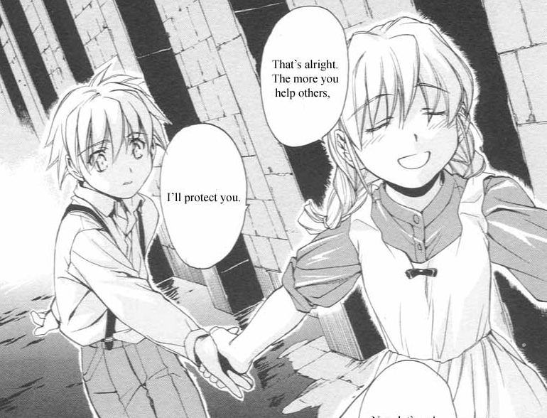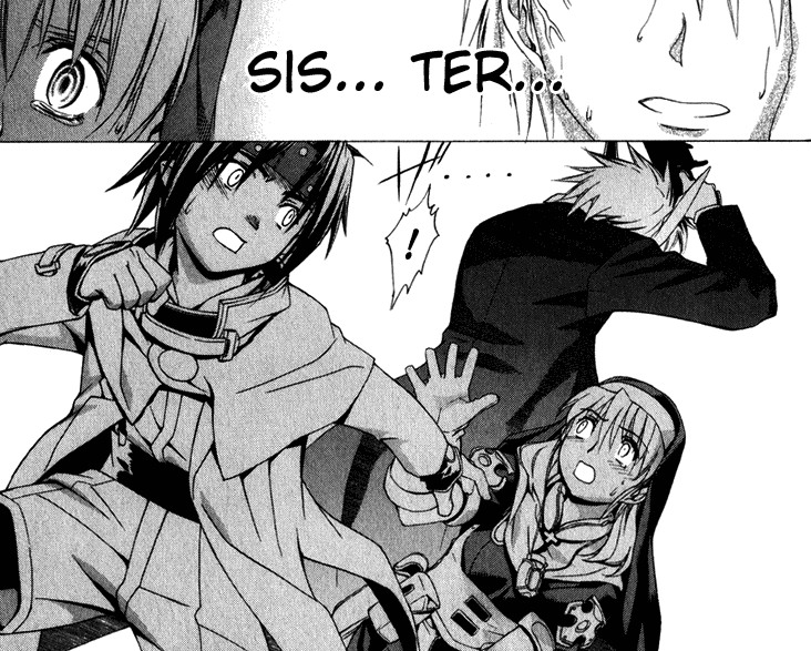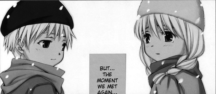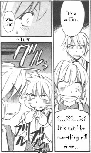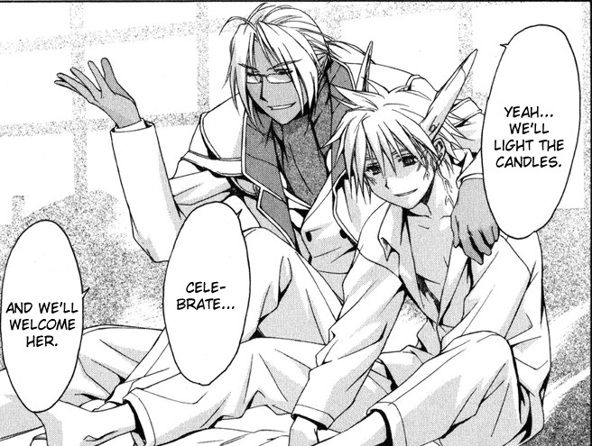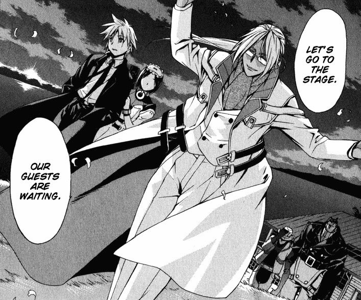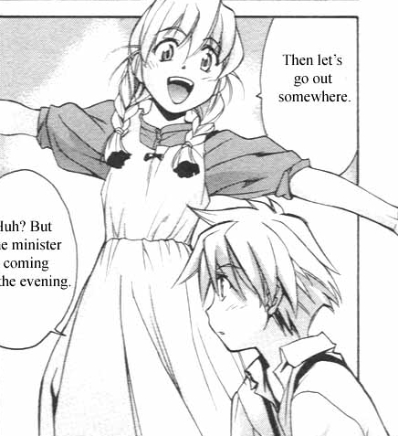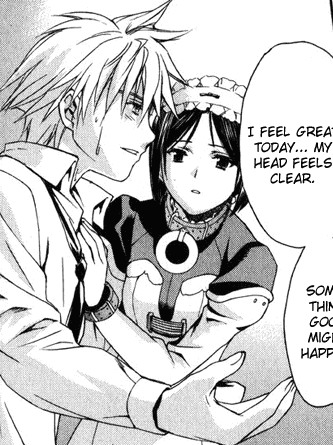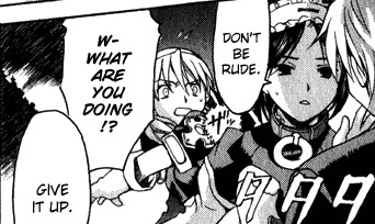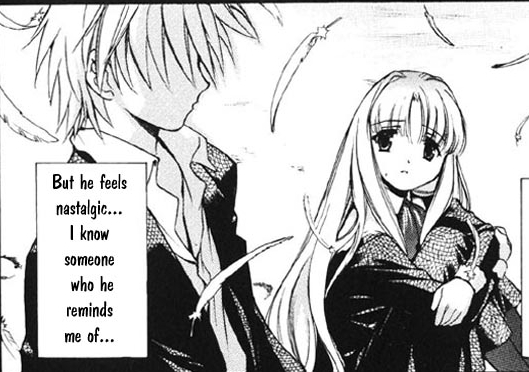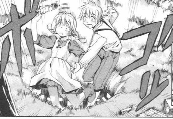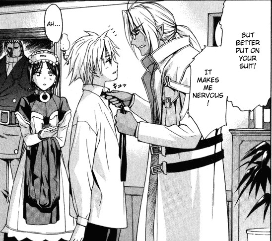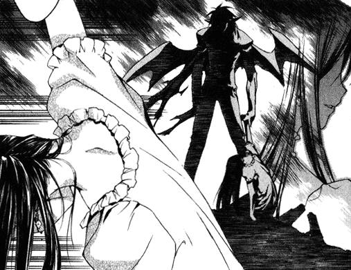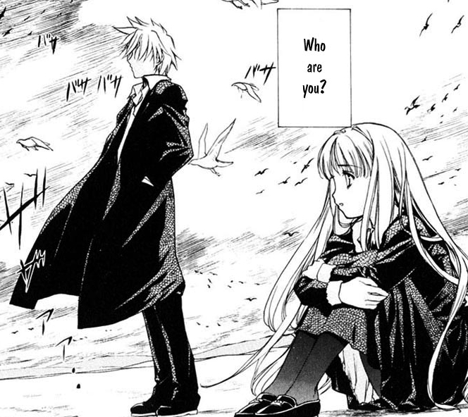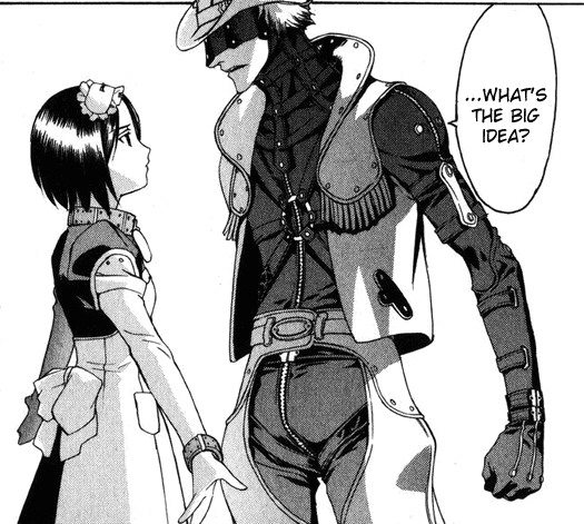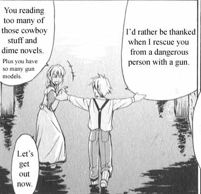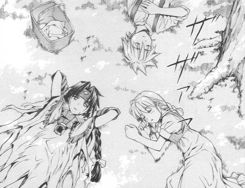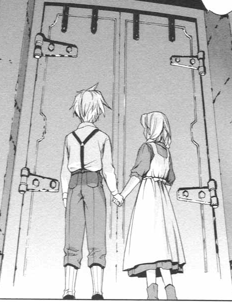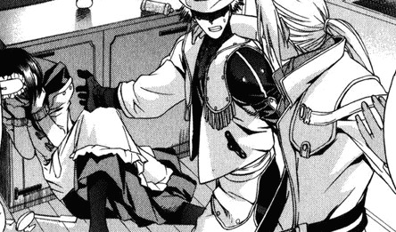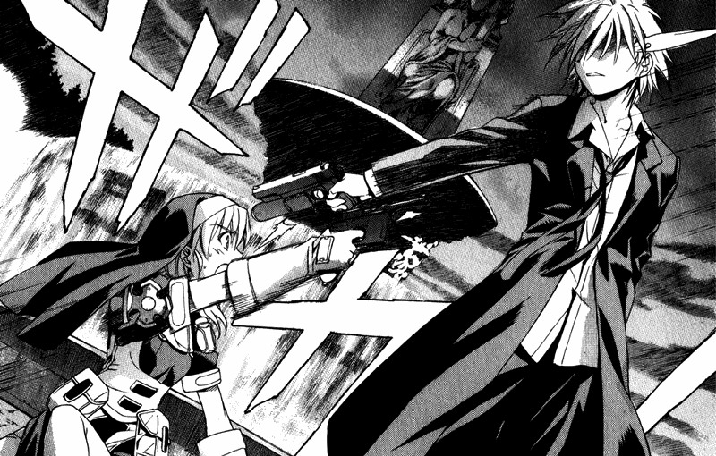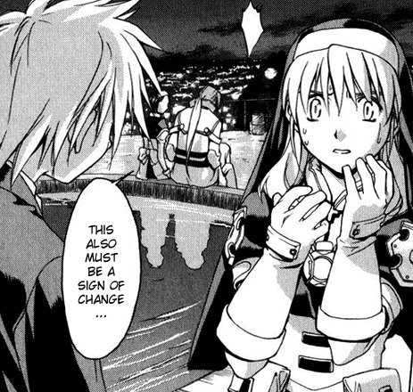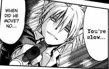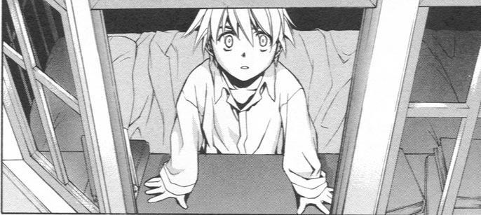 Черно-белая нарезка из манги. Все цветные картинки оттуда же - в других разделах.